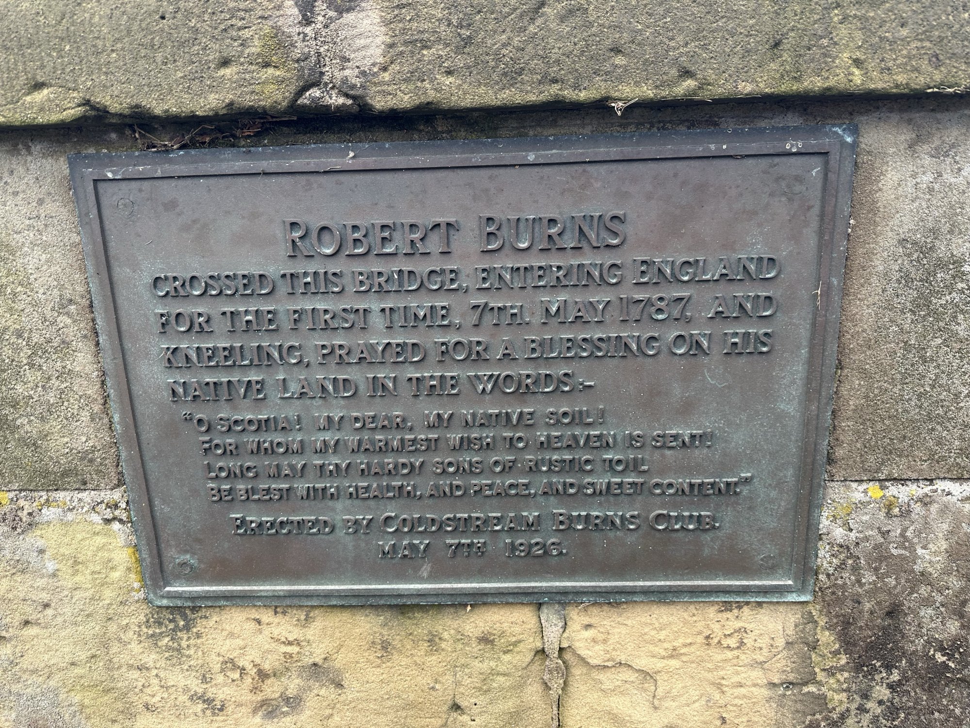 There we were, my wife and I, standing on the north bank of the River Tweed in Coldstream looking over at the south bank and England. The mighty Tweed has provided a natural border between Scotland and England for centuries. I had driven over the bridge that takes you over the border once before, and said that one day, I will do what Burns did, and walk over it. Well we did and we walked to the first village in England after crossing Cornhill on Tweed. We ventured into the local shop for a coffee and a snack. What was on the menu, but haggis shaped like a scotch egg covered as if a scotch egg in breadcrumbs. I joked with the lady behind the counter asking if they were allowed to sell haggis.