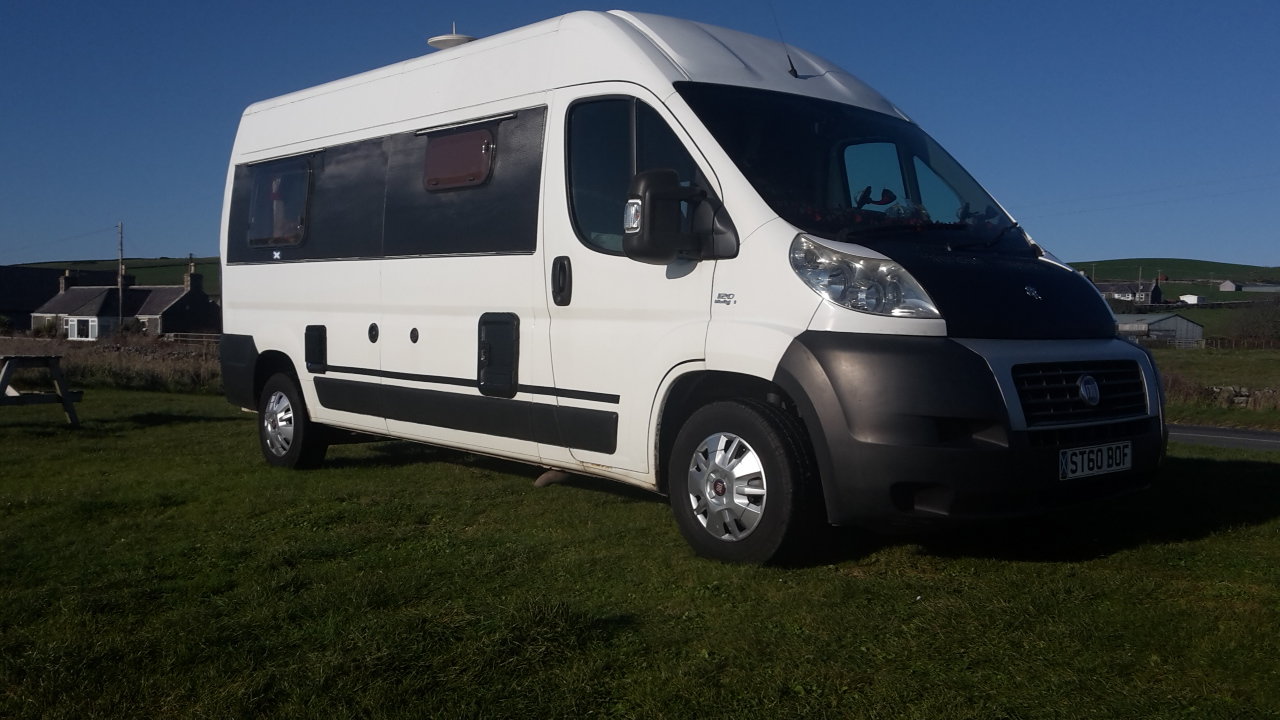 Due to upgrade we are selling our camper. It is a self build Fiat Ducato showing 155000 miles with a good level of features including. Toilet, wash basin, oven, hob,three way fridge, sink and worktop. Rear seating area which converts to double bed. Small wardrobe, Over cab storage and six lockers. roof vent with fan. Carver water heater which has stopped working,not sure why. In living area there is a Sony blue tooth head unit with 2 6x9 JBL speakers.
