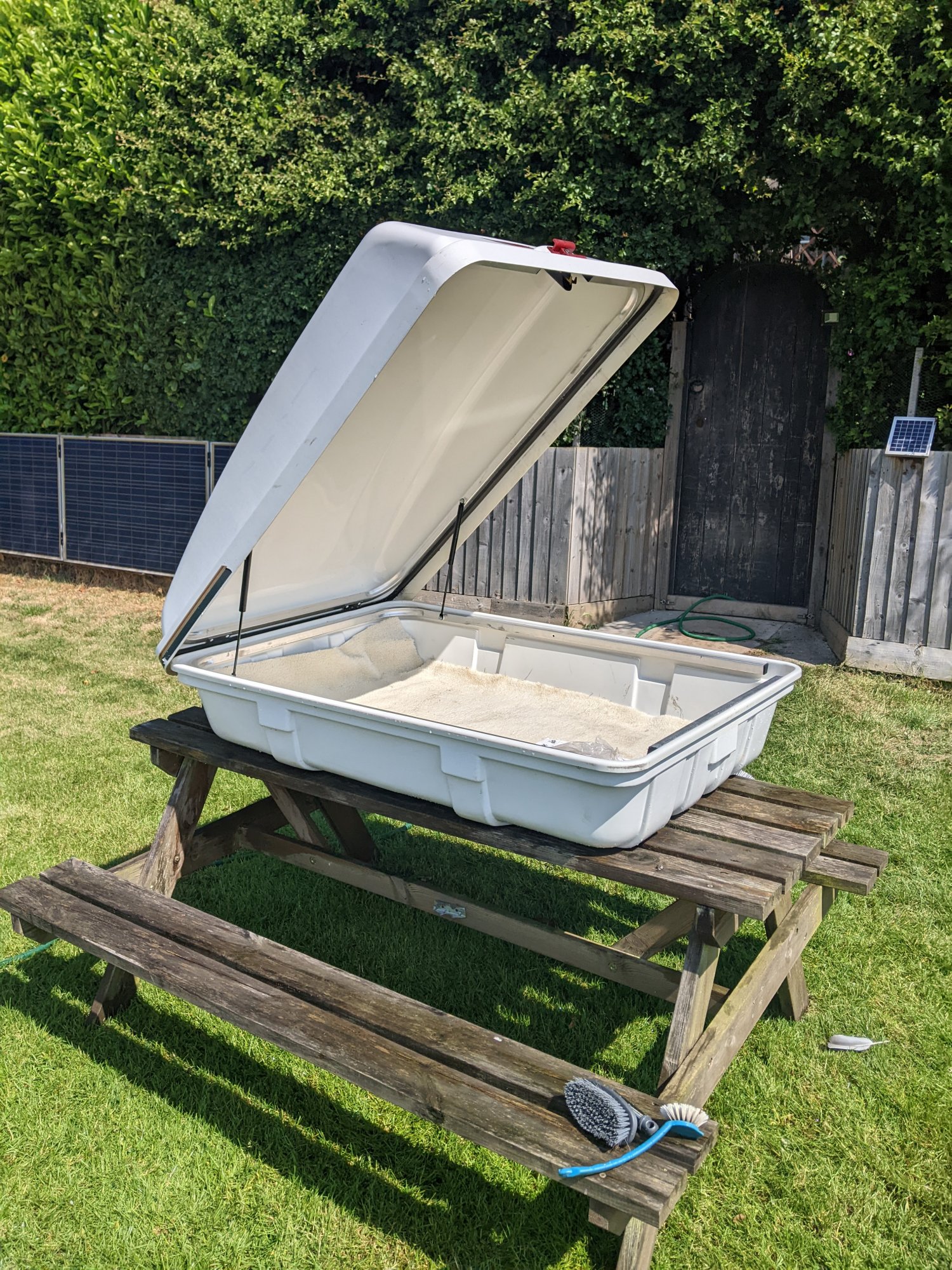 This box has been around Europe a few times, so has a few small marks and scratches from normal use, but is otherwise undamaged, completely weatherproof and works as it should.