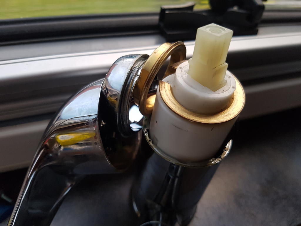 Having seen where a motorhomer took his van with a leaking tap into a dealer and was charged £90 for a new tap plus £50 for fitting this is much cheaper at around £20 for a replacement cartridge and an easy job that can be done from the top of the tap.